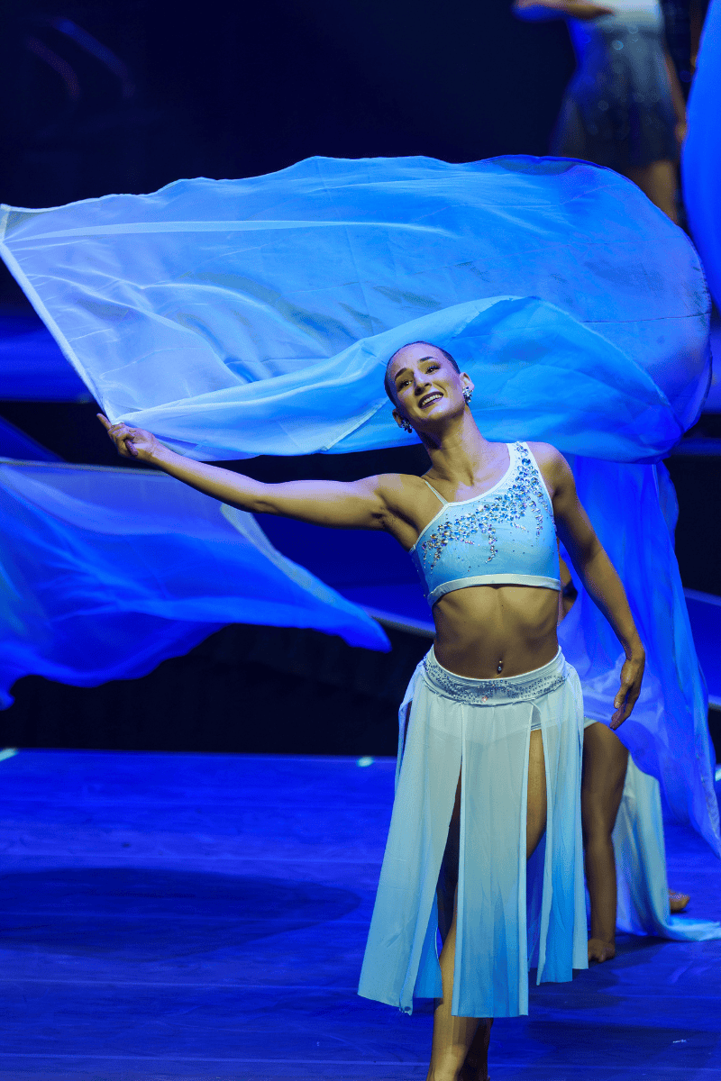The Water Flags are large sheer blue fabric flags designed to create soft flowing shapes through the air.